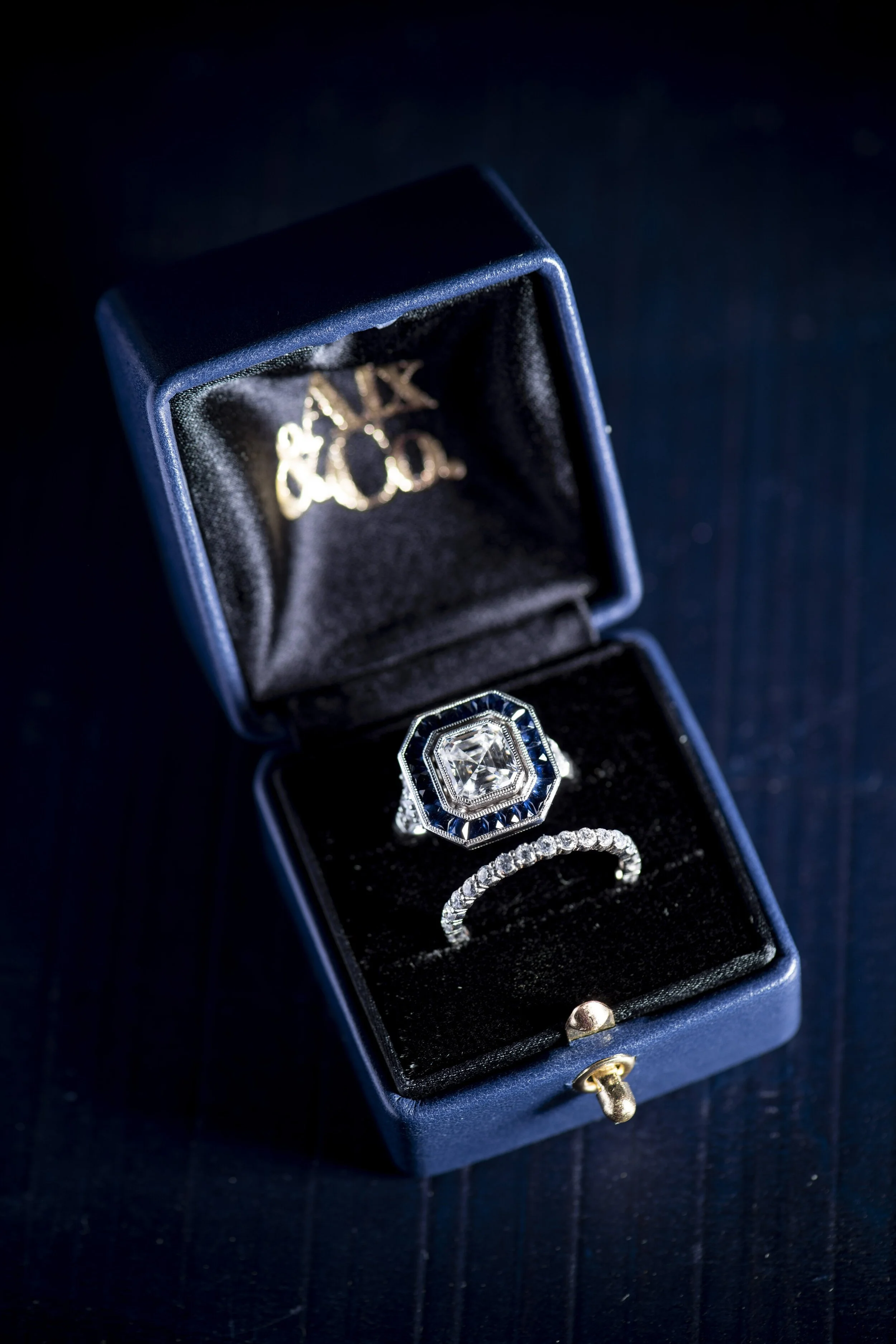 Alx&Co. Asscher Cut Diamond + French Cut Sapphire Ring
