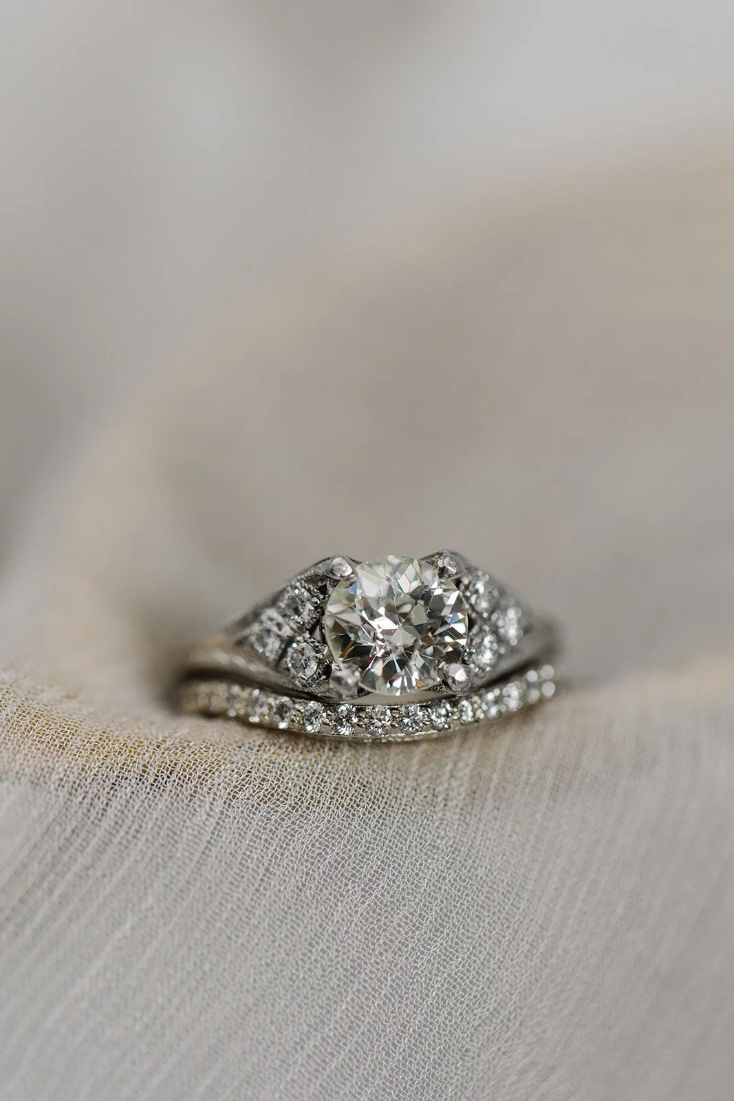 This aesthetic is loosely defined but to me, it often means that a bride is looking for a balance between a more complex piece inspired by the symmetry and geometry of Art Deco design and a more simplistic piece inspired by the understated nature of minimalist design. The Modern Bohemian style is clean and simple, often more fluid and organic inspired than geometric, and I find many brides who gravitate to this style prefer warmer metal tones like yellow or rose gold. There are usually some textural accents added in and the rings are largely understated, low-profile, easy to wear, and not too fussy.