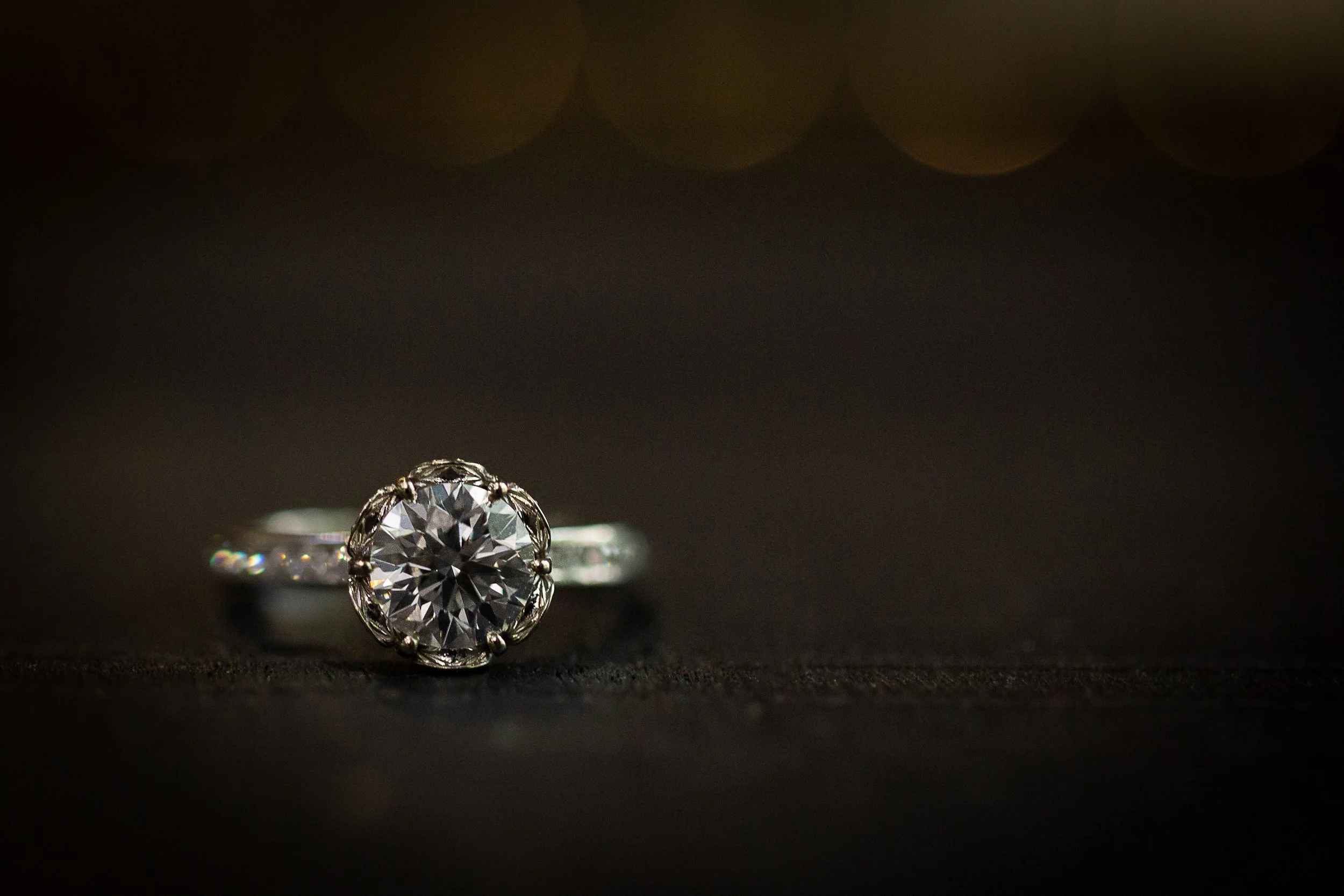 This ring design needed to be adjusted to accommodate the smaller center stone that the client sourced online. His original design idea featured diamonds along the halo of the ring but the smaller size did not permit adding diamonds here, so instead we added pretty engraving to keep a sparkly texture. We actually love how this turned out and feel it makes the ring more unique, but it took some adjustment to the original idea to get here.
